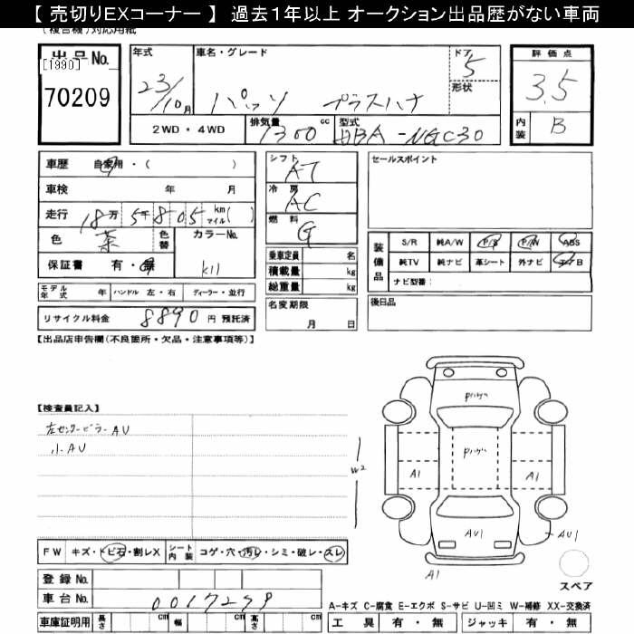 TOYOTA PASSO +Hana - лот 70209