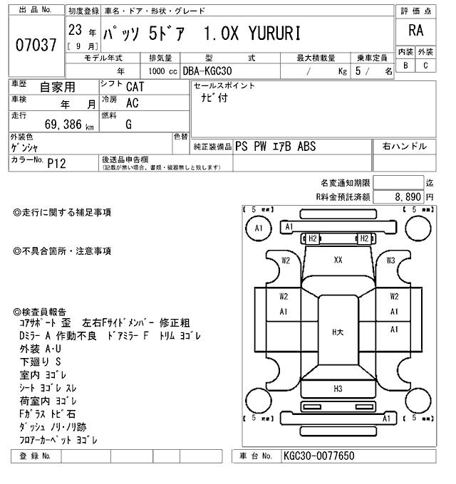 TOYOTA PASSO 1.0X YURURI - лот 7037