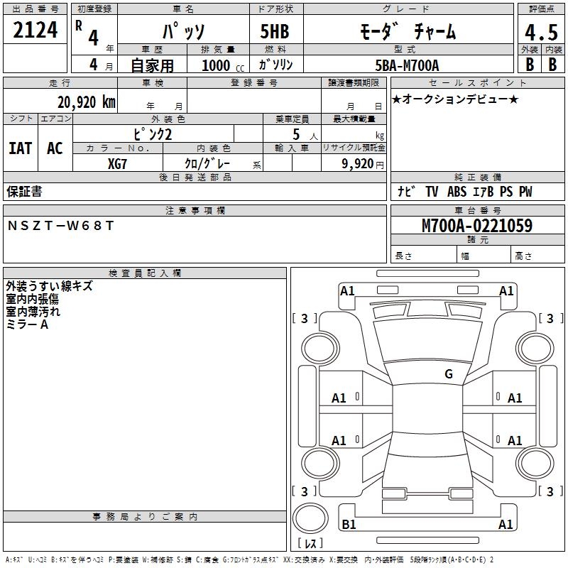 TOYOTA PASSO MO-DA CHARM - лот 2124