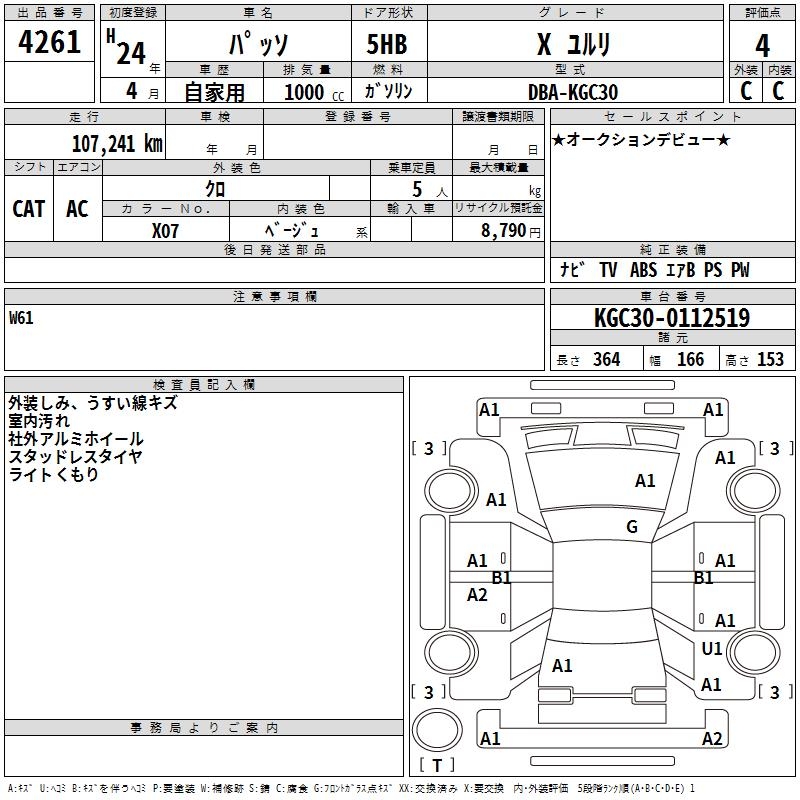 TOYOTA PASSO X YURURI - лот 4261