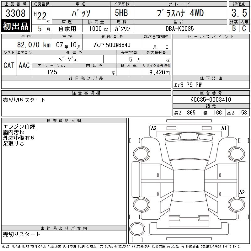 TOYOTA PASSO +HANA 4WD - лот 3308