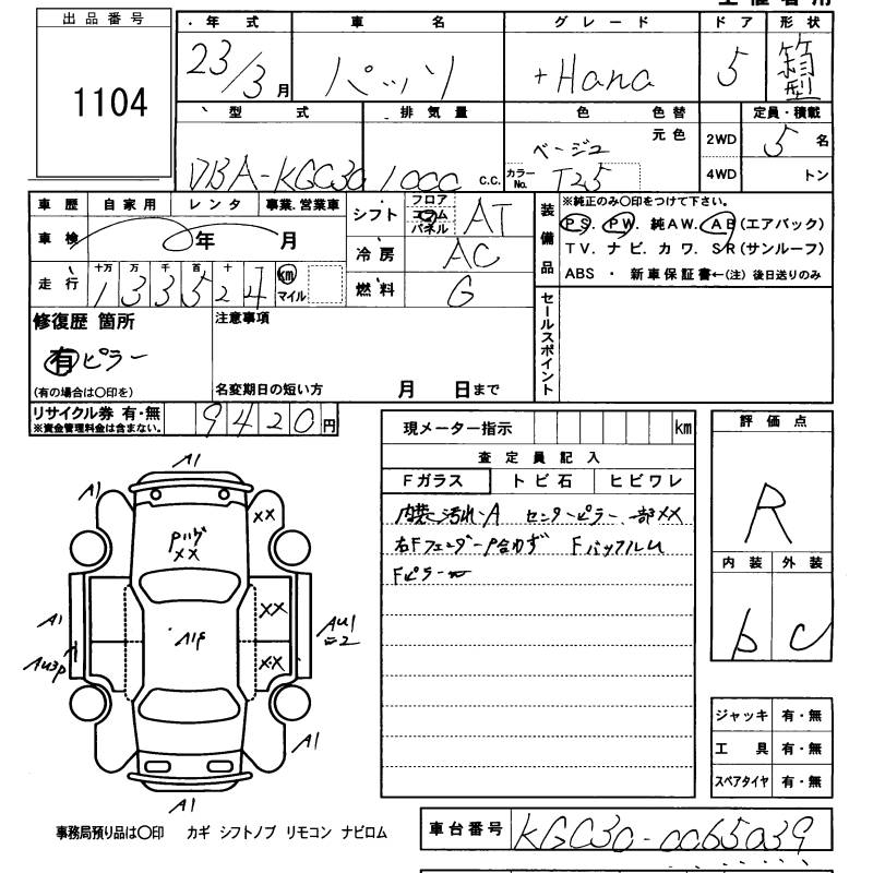 TOYOTA PASSO +HANA - лот 1104