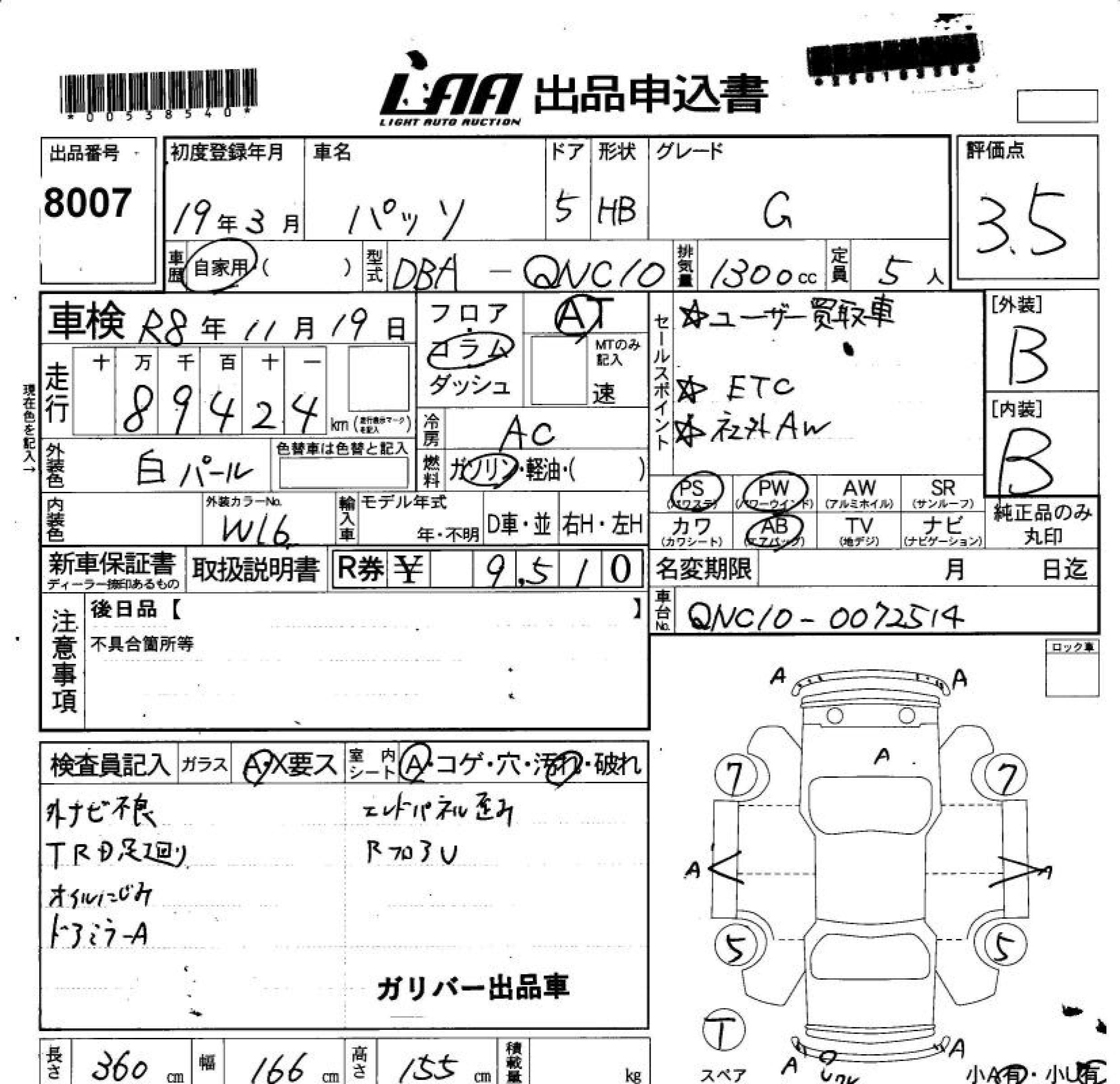 TOYOTA PASSO G - лот 8007