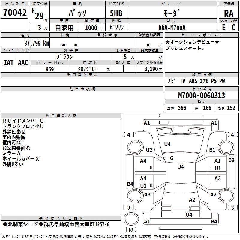 TOYOTA PASSO MO-DA - лот 70042