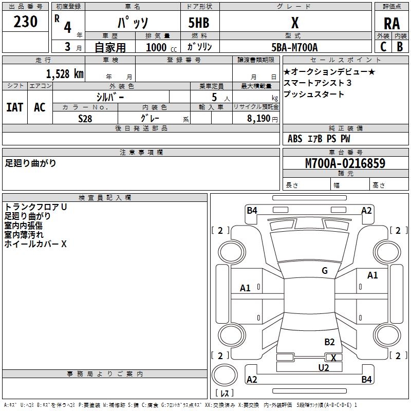 TOYOTA PASSO X - лот 230