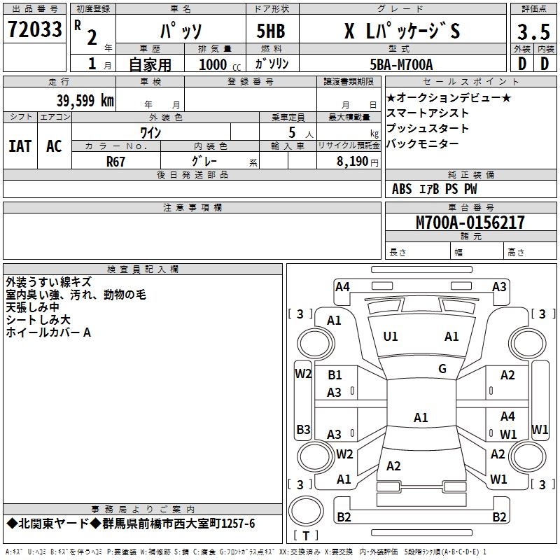 TOYOTA PASSO X L PACKAGE S - лот 72033