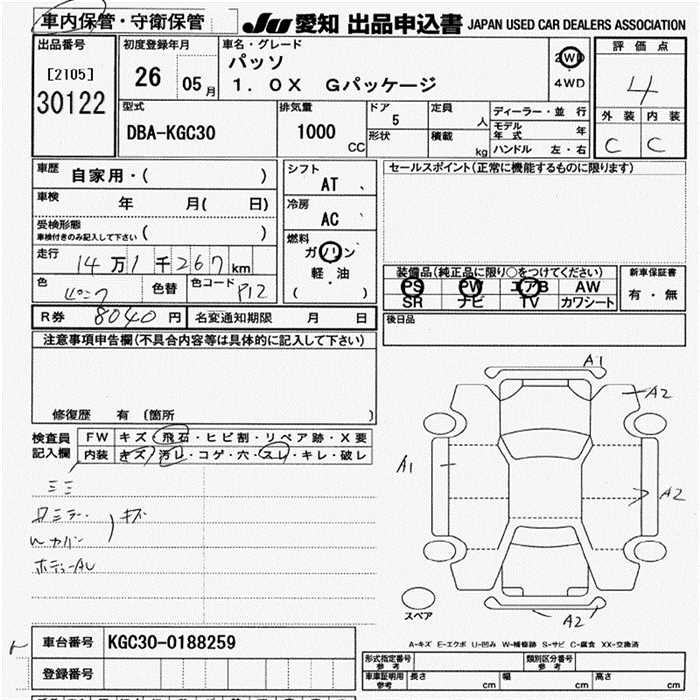 TOYOTA PASSO 1.0X G PACKAGE - лот 30122