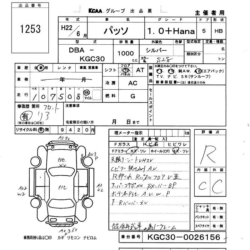 TOYOTA PASSO +HANA - лот 1253