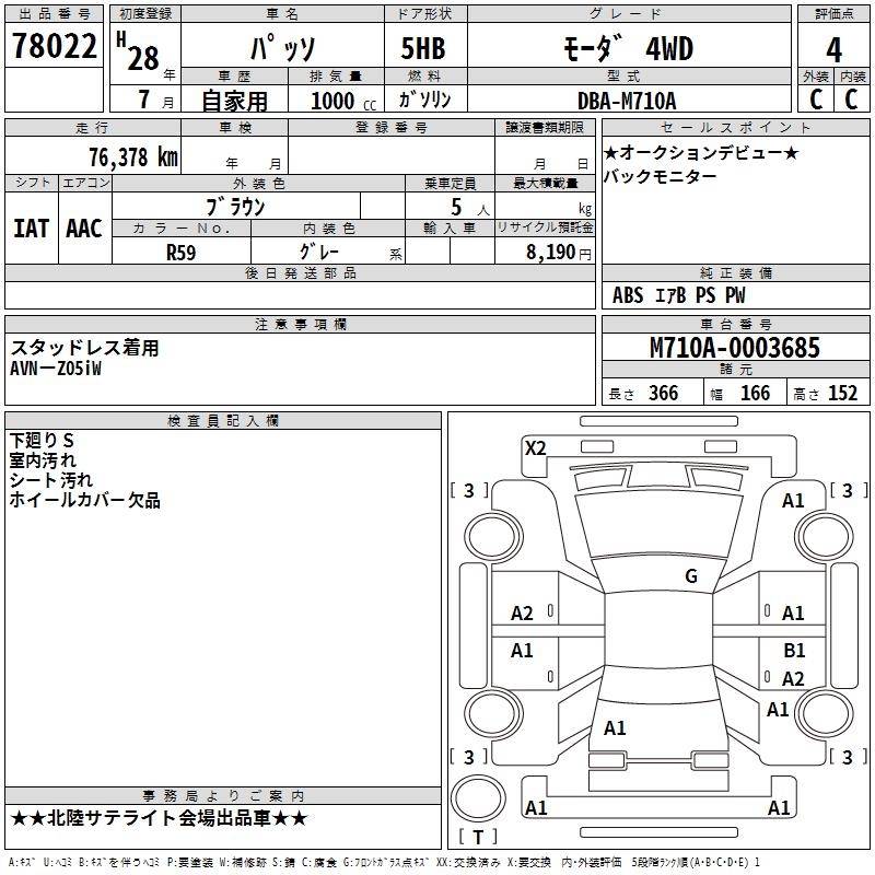 TOYOTA PASSO MO-DA4WD - лот 78022