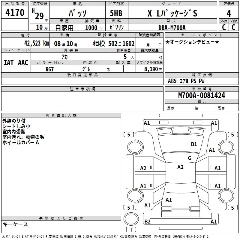 TOYOTA PASSO X L PACKAGE S - лот 4170