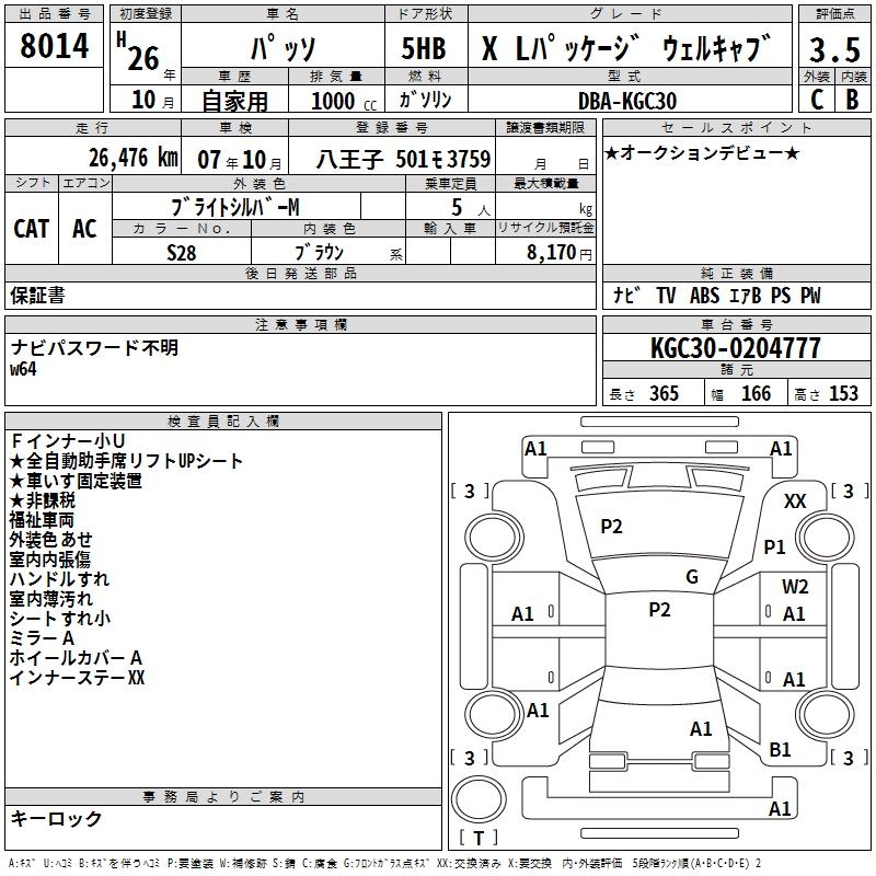 TOYOTA PASSO X L PACKAGE WELL CAB - лот 8014