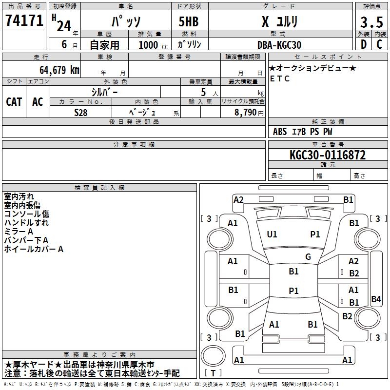 TOYOTA PASSO X YURURI - лот 74171