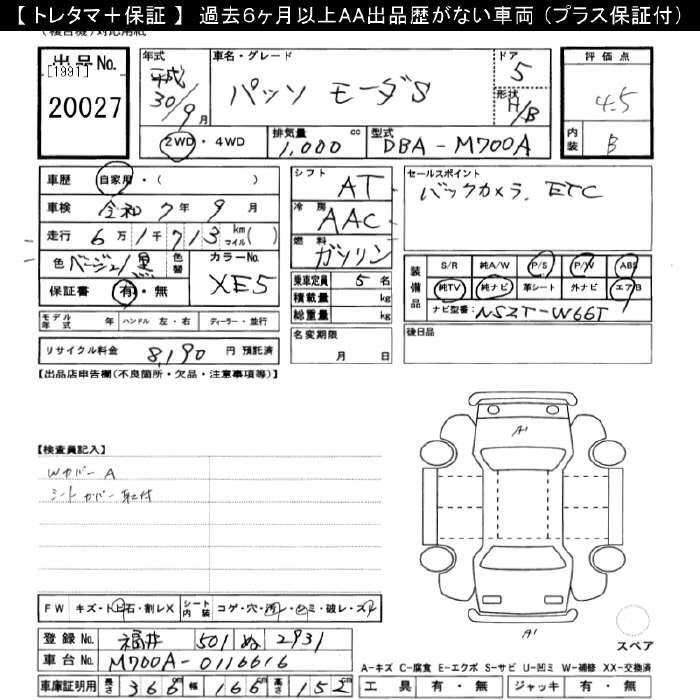 TOYOTA PASSO MO-DAS - лот 20027