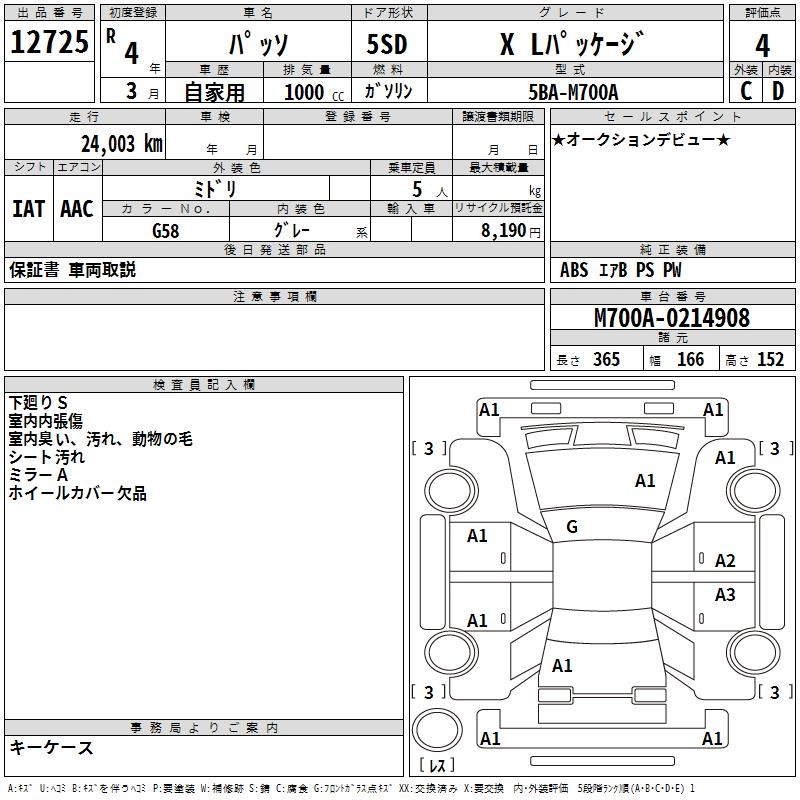 TOYOTA PASSO X L PACKAGE - лот 12725
