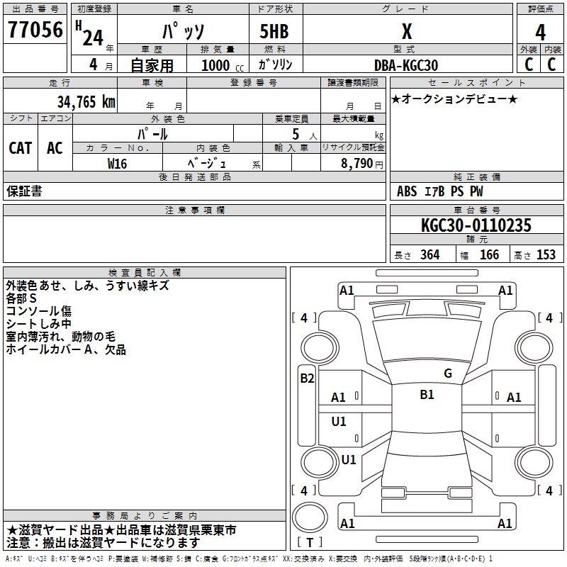 TOYOTA PASSO X - лот 77056