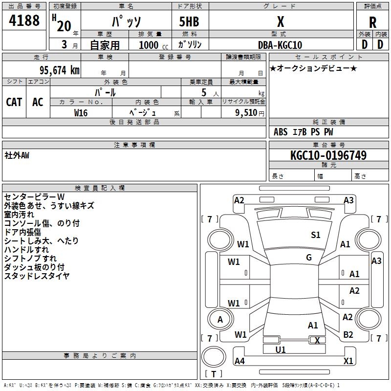 TOYOTA PASSO X - лот 4188