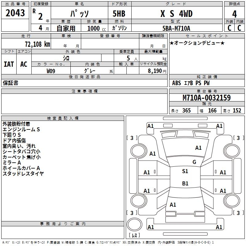 TOYOTA PASSO X S 4WD - лот 2043