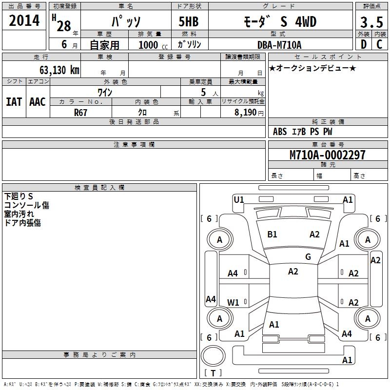 TOYOTA PASSO MO-DAS 4WD - лот 2014