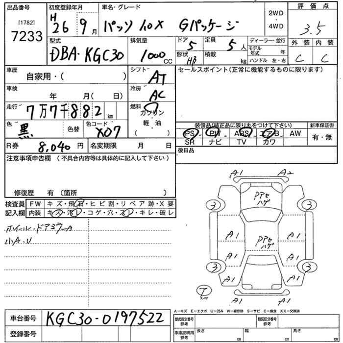 TOYOTA PASSO X G PACKAGE - лот 7233