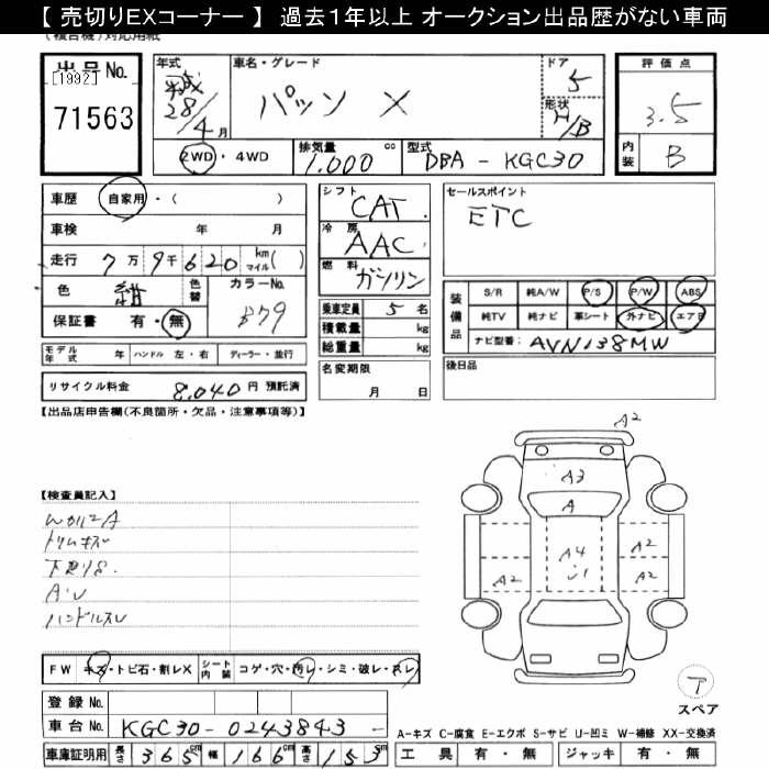 TOYOTA PASSO X - лот 71563