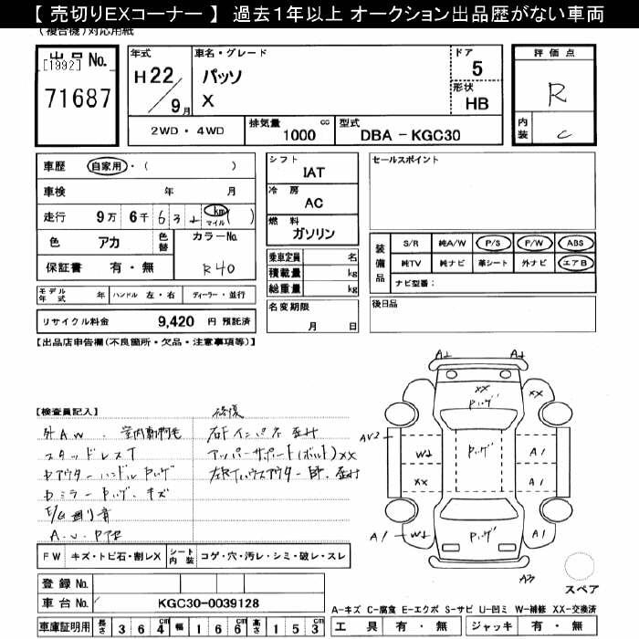 TOYOTA PASSO X - лот 71687