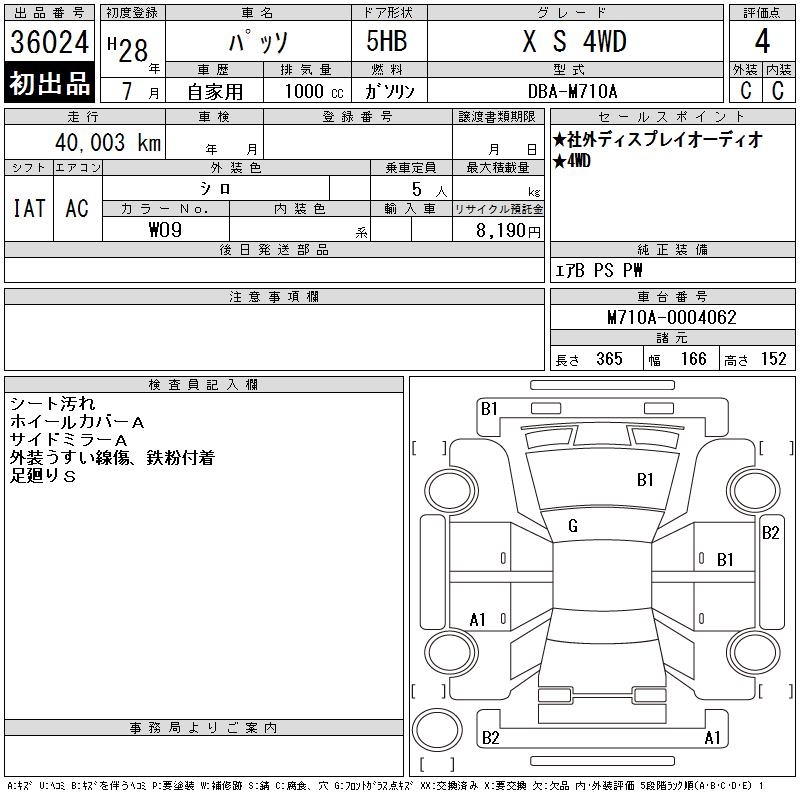 TOYOTA PASSO X S 4WD - лот 36024