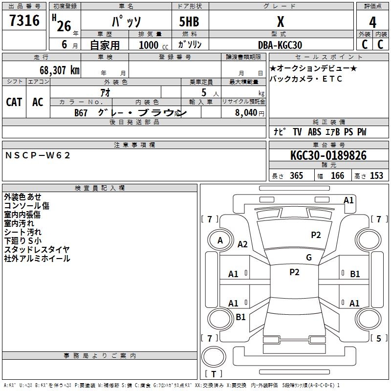 TOYOTA PASSO X - лот 7316