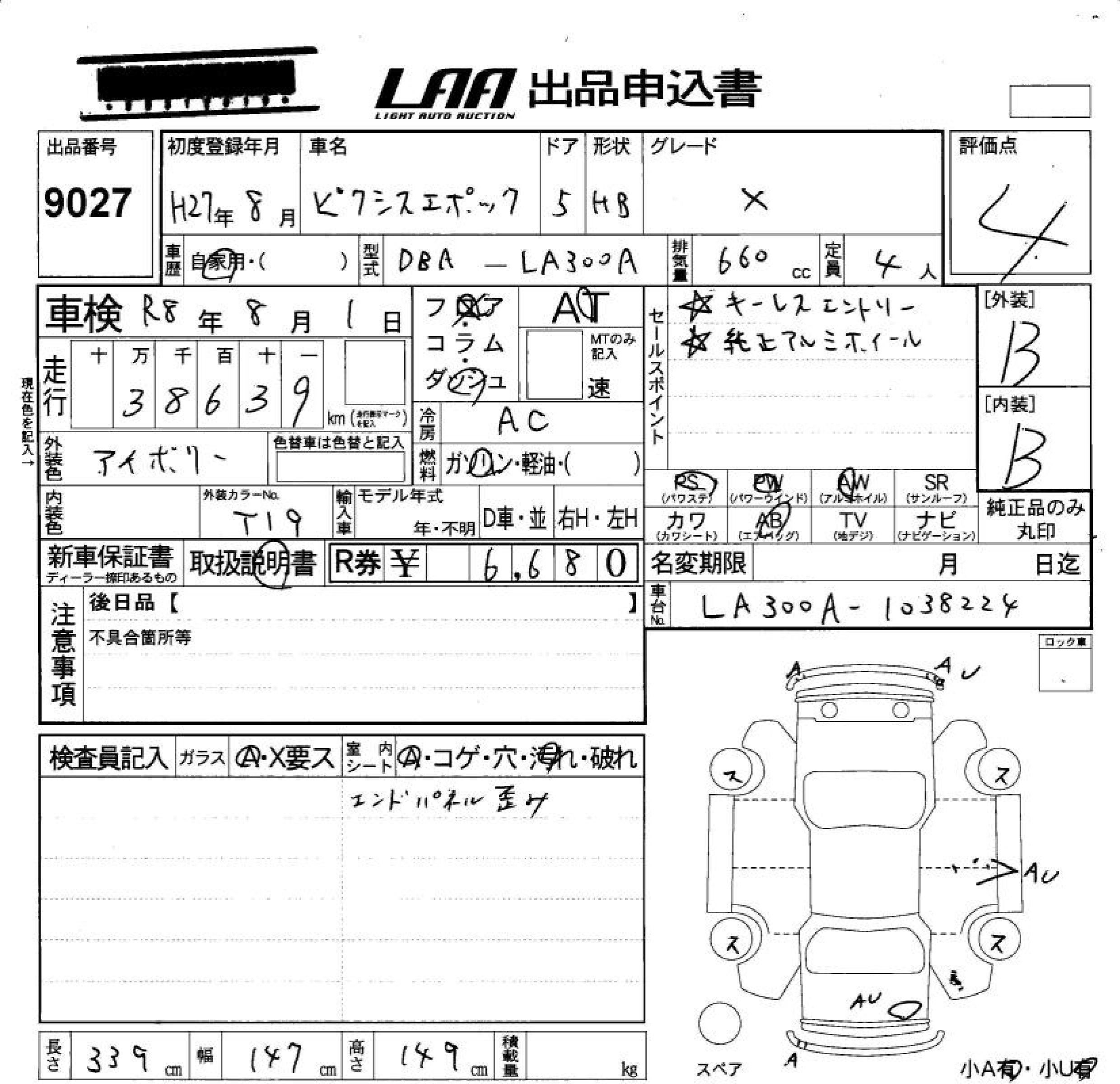 TOYOTA PIXIS EPOCH X - лот 9027