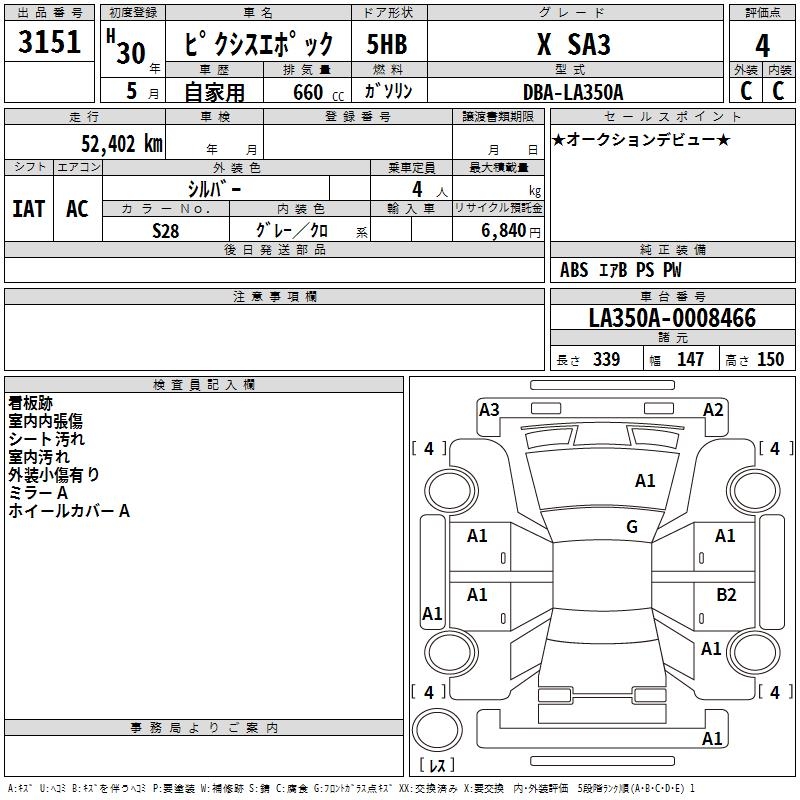 TOYOTA PIXIS EPOCH X SA3 - лот 3151
