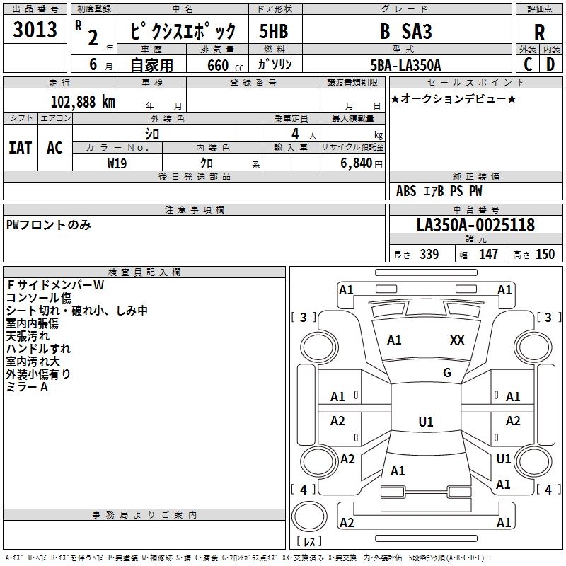 TOYOTA PIXIS EPOCH B SA3 - лот 3013