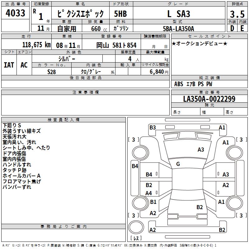 TOYOTA PIXIS EPOCH L SA3 - лот 4033