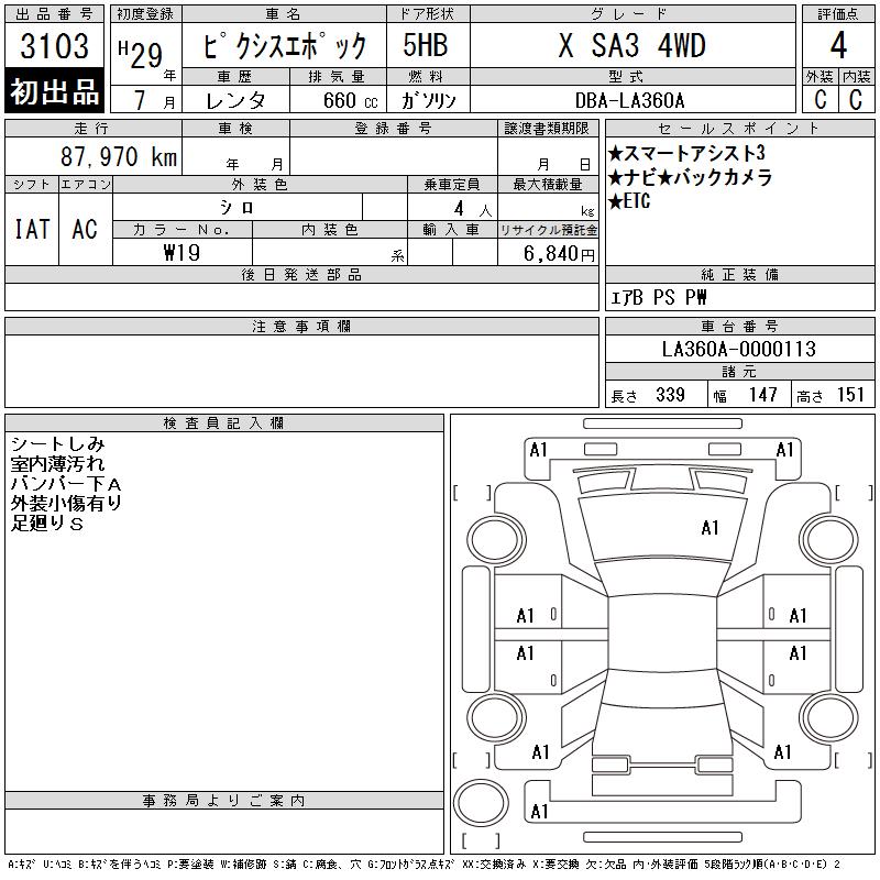 TOYOTA PIXIS EPOCH X SA3 4WD - лот 3103