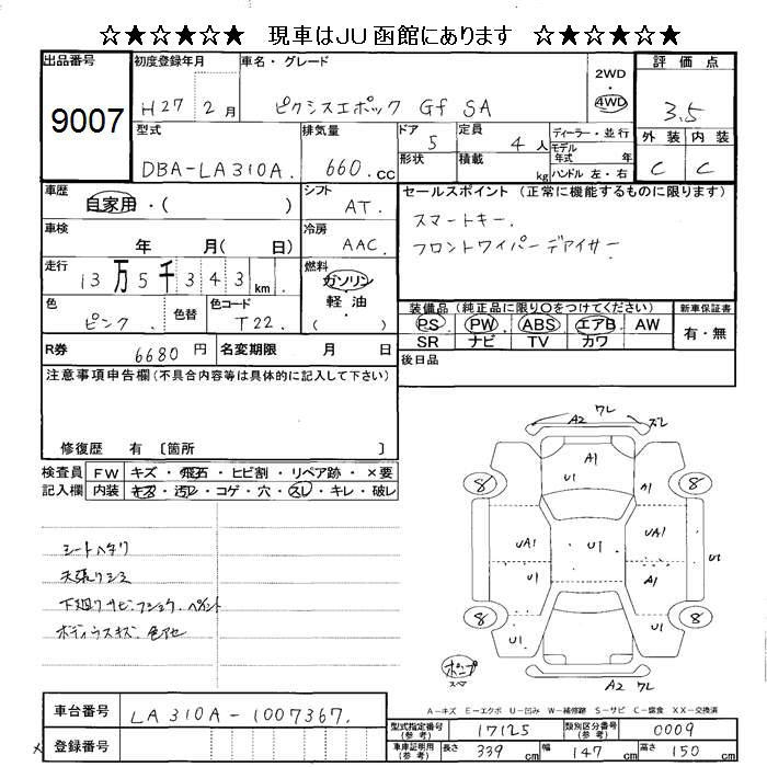 TOYOTA PIXIS EPOCH 4WD Gf SA - лот 9007