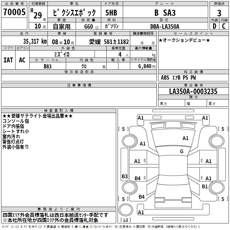TOYOTA PIXIS EPOCH B SA3 - лот 70005