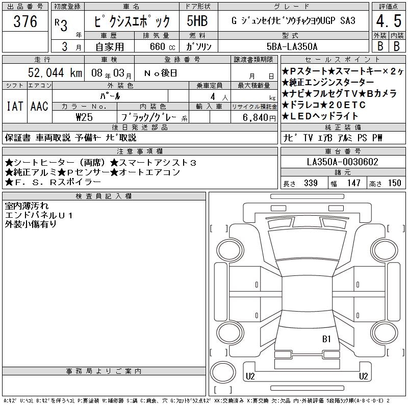 TOYOTA PIXIS EPOCH G ORIGINAL NAVIGATION SOU TEA KSA3 - лот 376