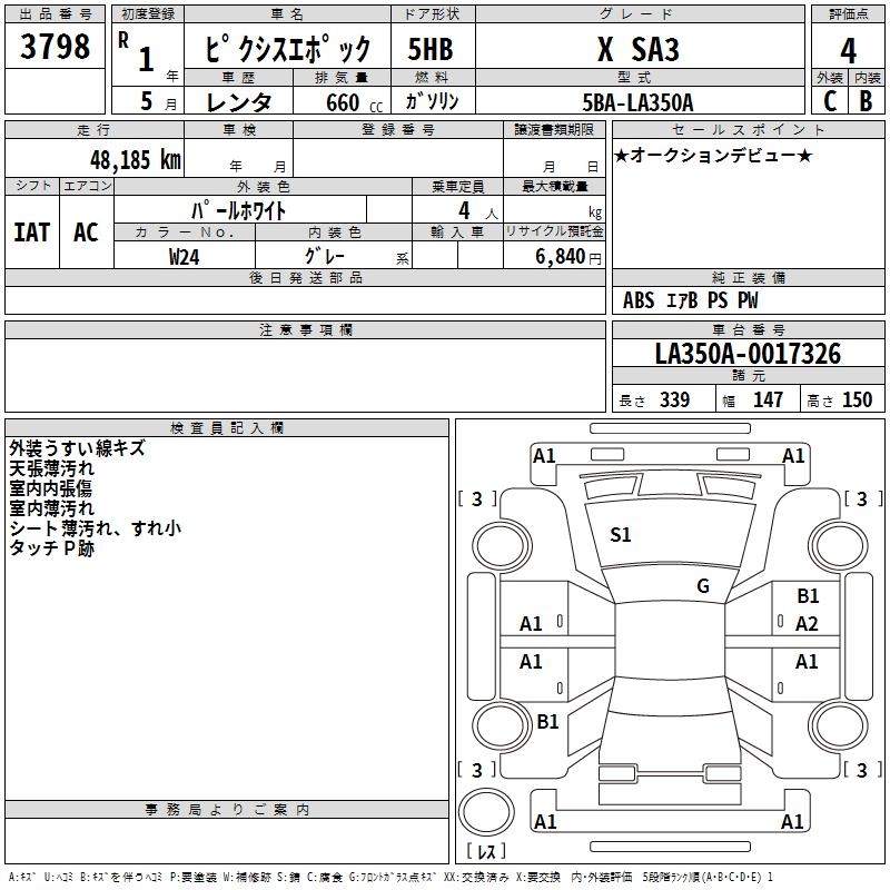 TOYOTA PIXIS EPOCH X SA3 - лот 3798