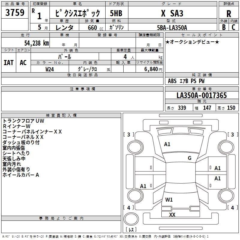 TOYOTA PIXIS EPOCH X SA3 - лот 3759