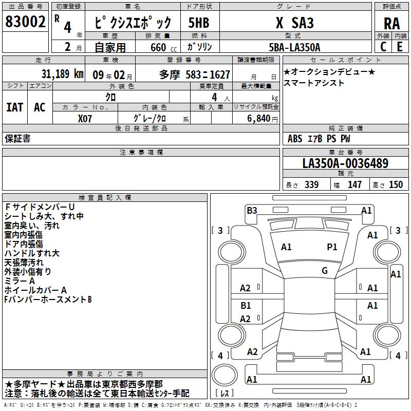 TOYOTA PIXIS EPOCH X SA3 - лот 83002