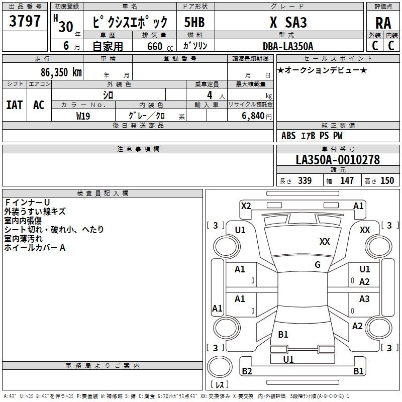 TOYOTA PIXIS EPOCH X SA3 - лот 3797