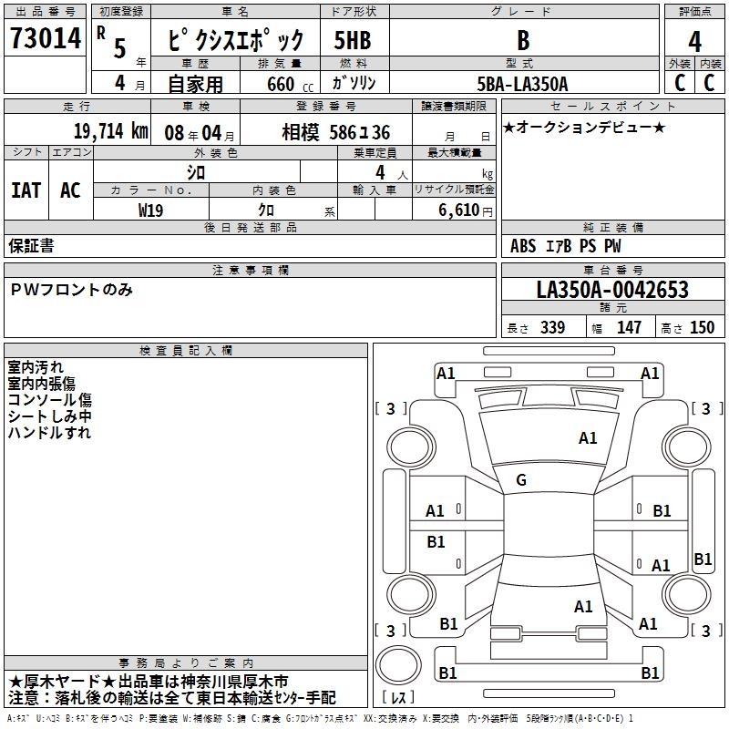 TOYOTA PIXIS EPOCH B - лот 73014