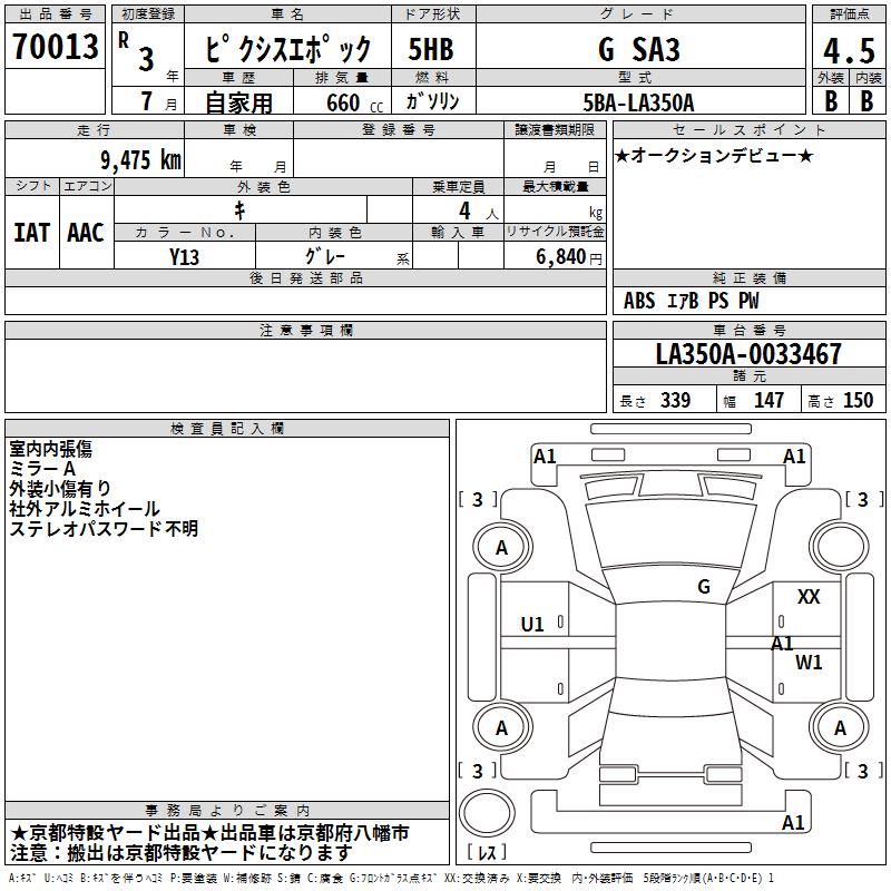 TOYOTA PIXIS EPOCH G SA3 - лот 70013