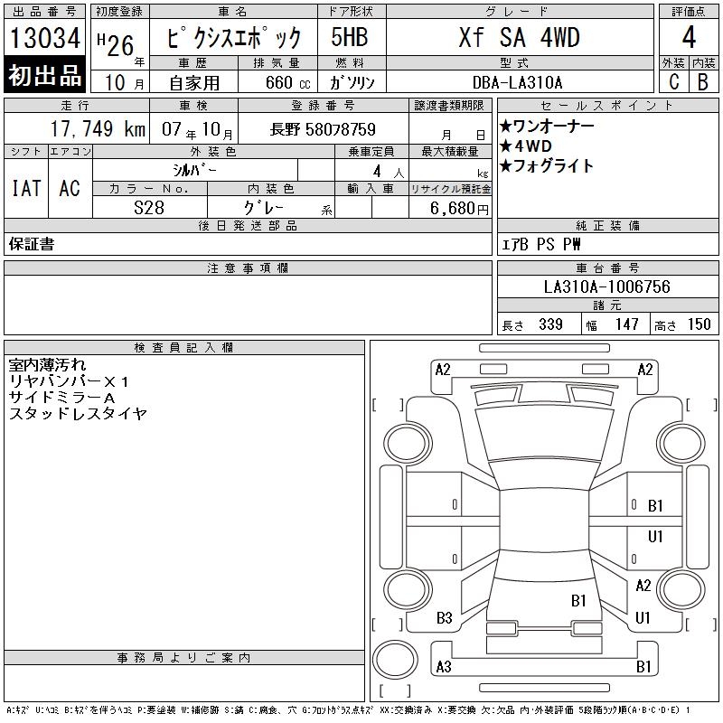 TOYOTA PIXIS EPOCH - лот 13034