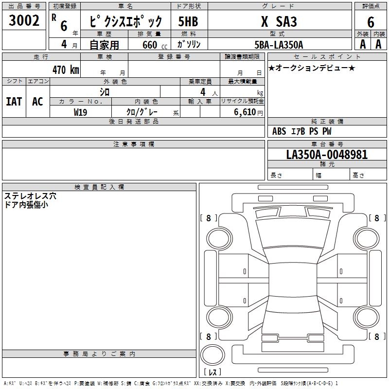 TOYOTA PIXIS EPOCH X SA3 - лот 3002