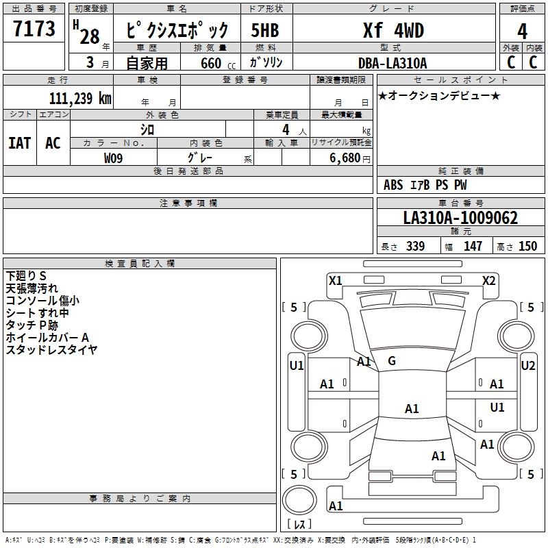 TOYOTA PIXIS EPOCH Xf 4WD - лот 7173