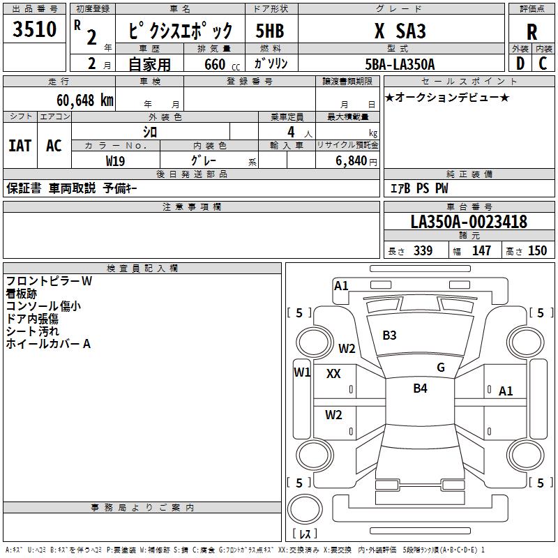 TOYOTA PIXIS EPOCH X SA3 - лот 3510