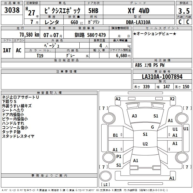 TOYOTA PIXIS EPOCH Xf 4WD - лот 3038