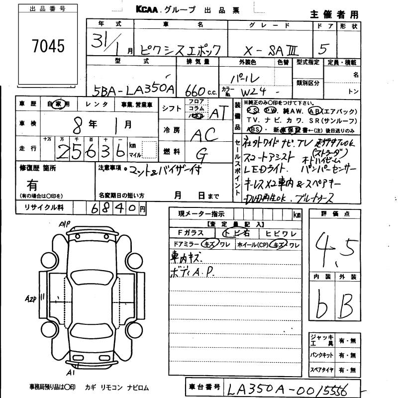 TOYOTA PIXIS EPOCH X SA. - лот 7045