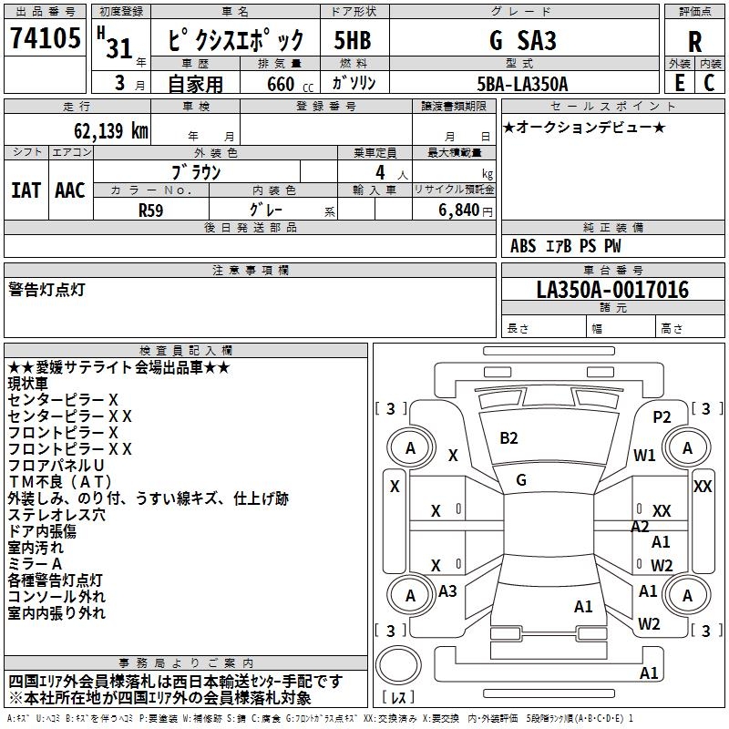 TOYOTA PIXIS EPOCH G SA3 - лот 74105