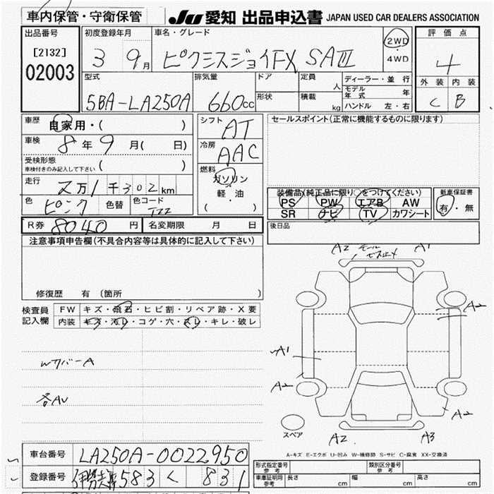 TOYOTA PIXIS JOY F X SA3 - лот 2003