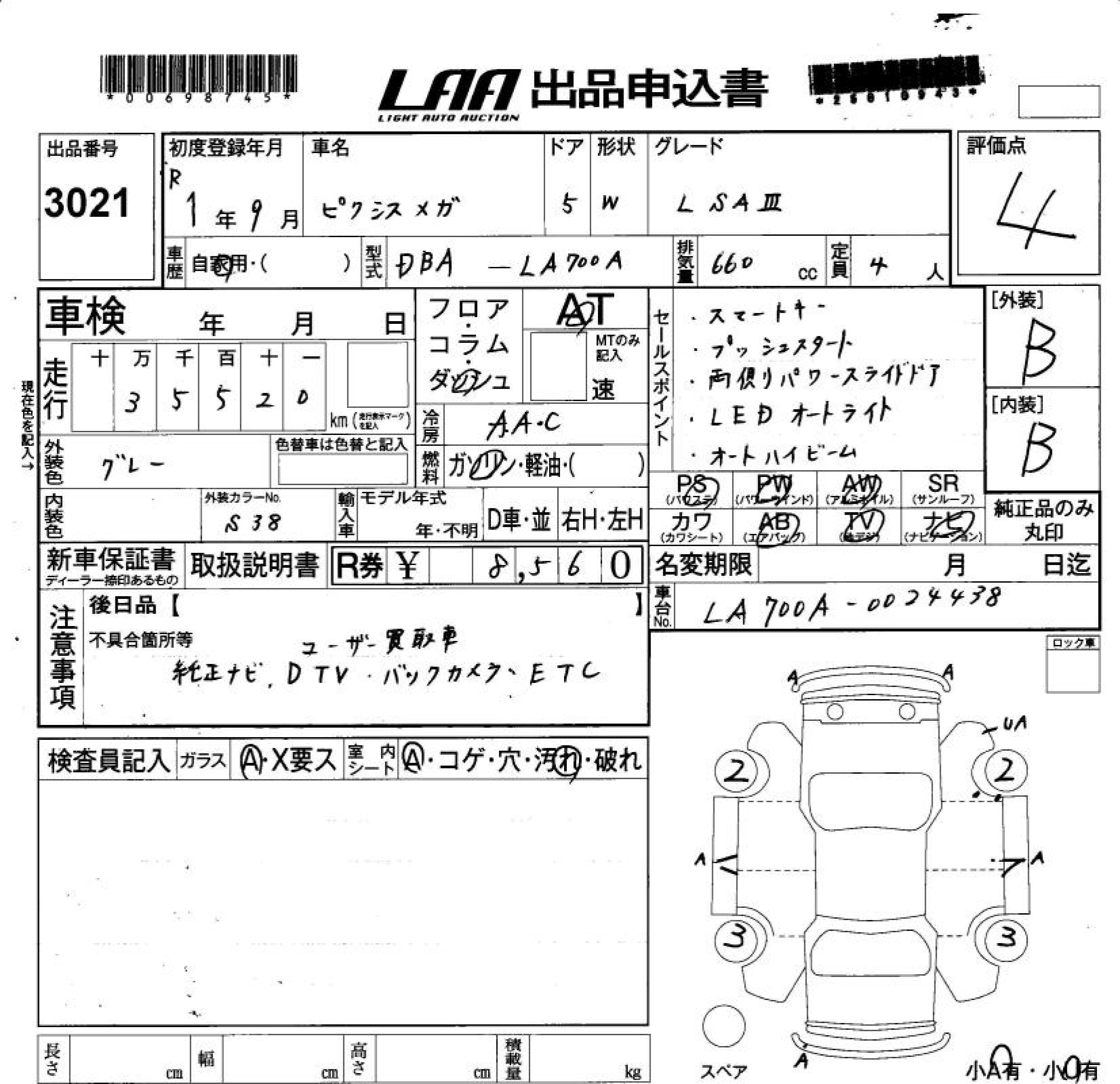 TOYOTA PIXIS MEGA L SA. - лот 3021